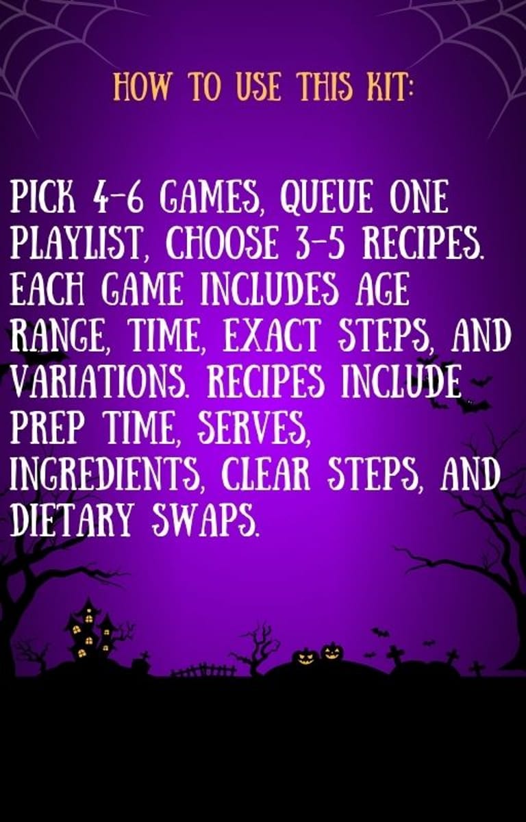 Halloween At-Home Guide - 15 Games- 37 Playlists- 14 Recipes- PDF 26 Pages